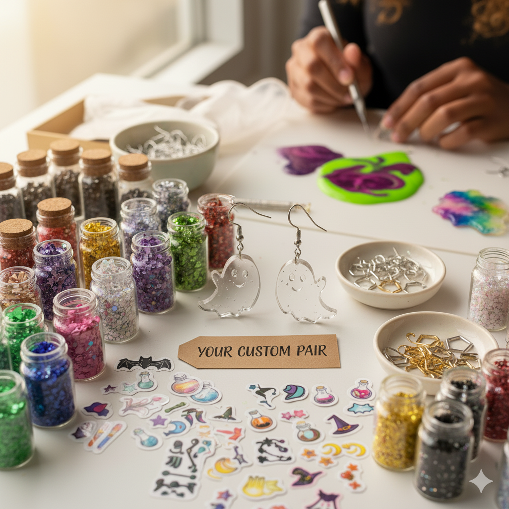Stop wishing for the perfect accessory—design it yourself! This listing allows you to commission a completely unique pair of handmade resin earrings tailored exactly to your vision. Whether you want a specific color blend, a unique glitter mix, or a special charm, you decide every detail.