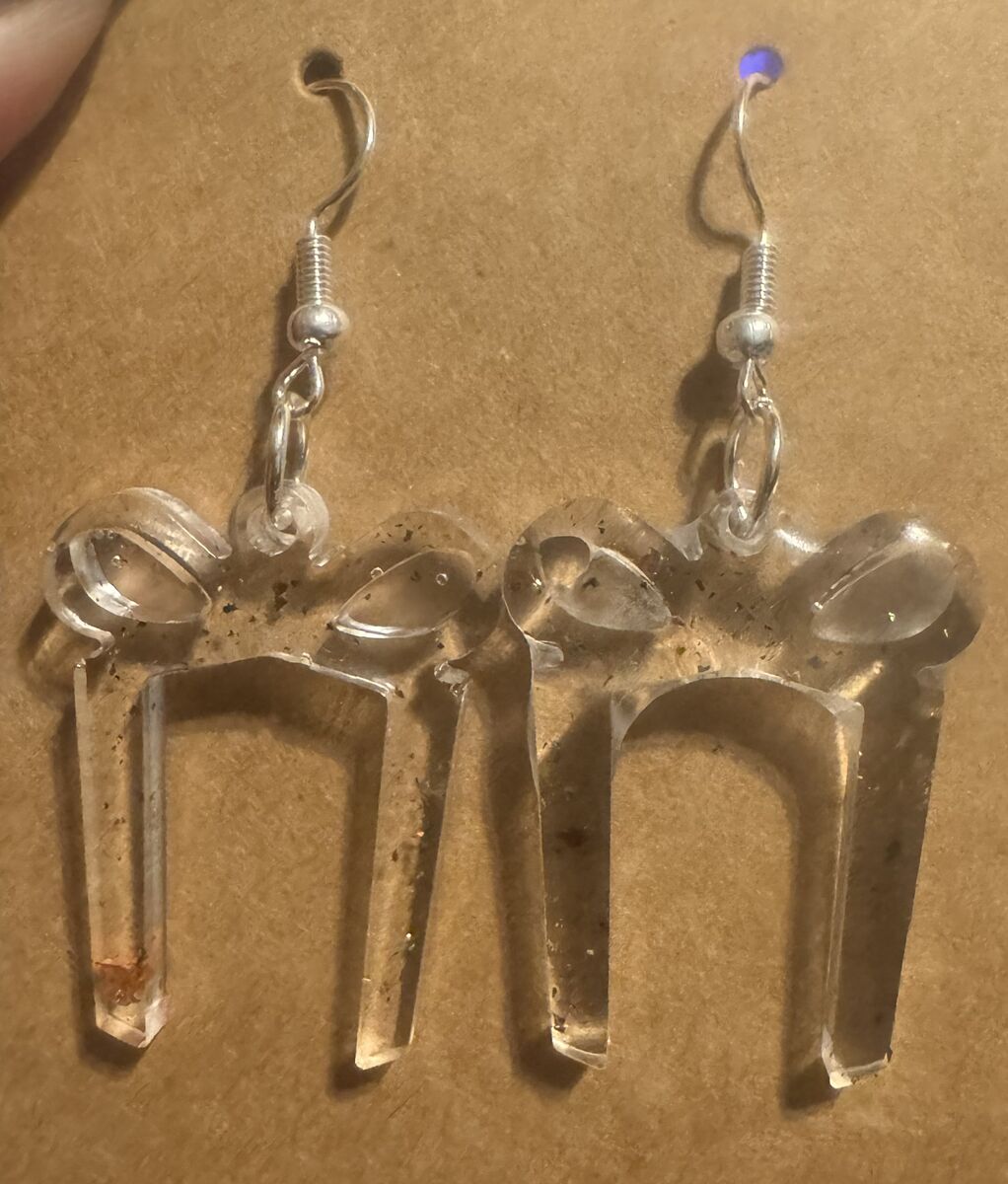 Crafted from crystal-clear resin with a subtle dusting of sparkle (or glass flecks), these charms feature a stylized design that evokes a tiny, perfectly wrapped gift box. The transparent material ensures they catch the light beautifully, while the distinctive shape offers a fun, modern twist on holiday jewelry.